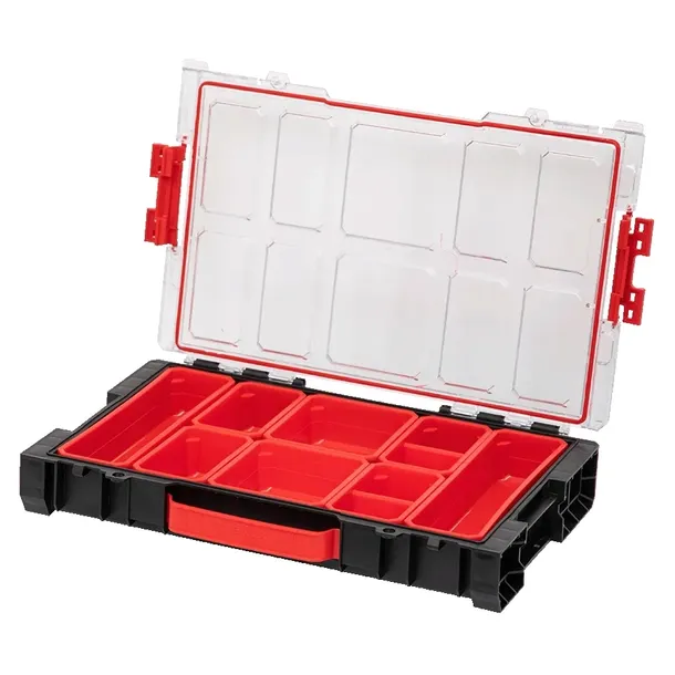- komory organizacyjne w obudowie, przeźroczysta pokrywa, uchwyt do przenoszenia, zatrzaski zabezpieczające